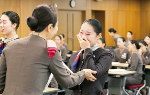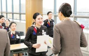 お辞儀の仕方から笑顔の作り方までCAに特化した指導を受けられる対策授業。