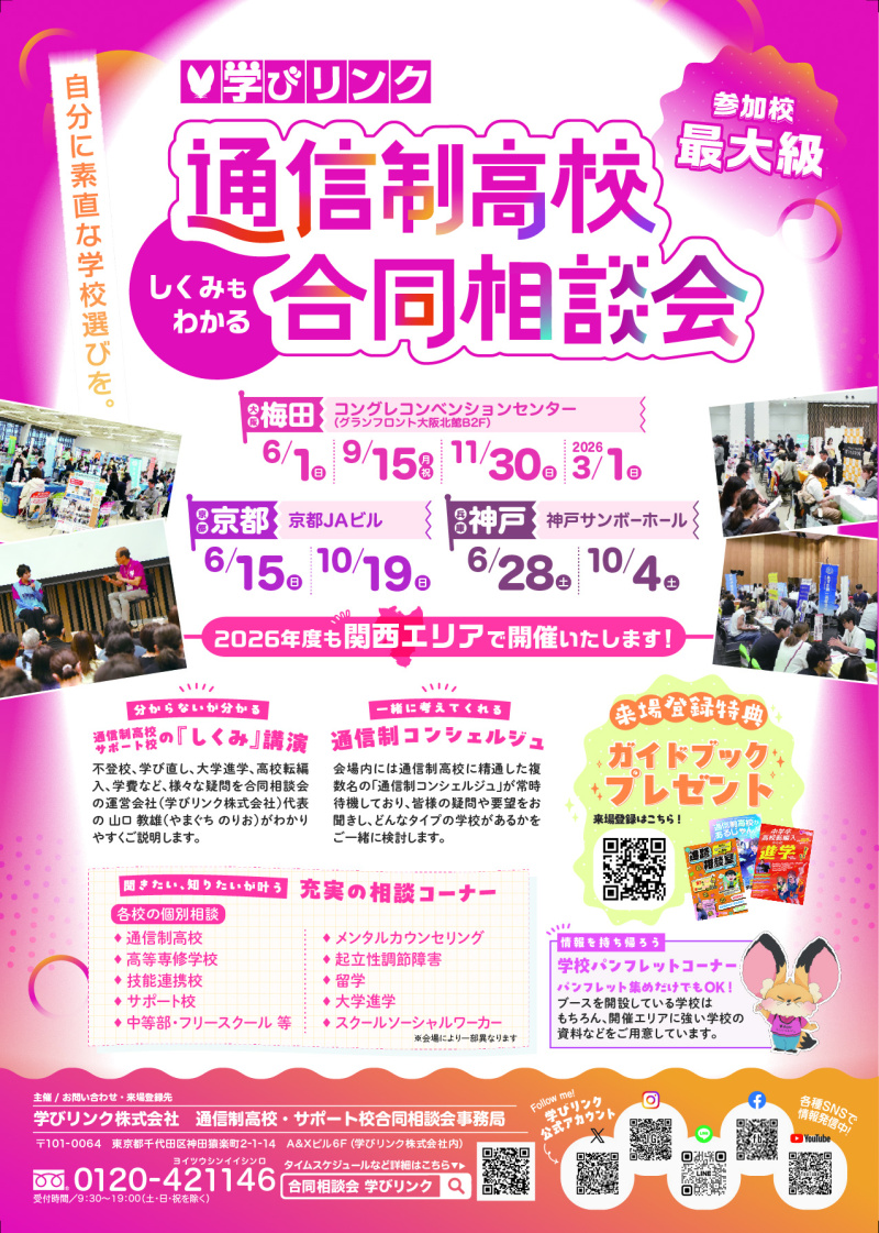 【9/15(月祝) 『通信制高校・サポート校合同相談会』@グランフロント大阪(大阪府)】に参加します!