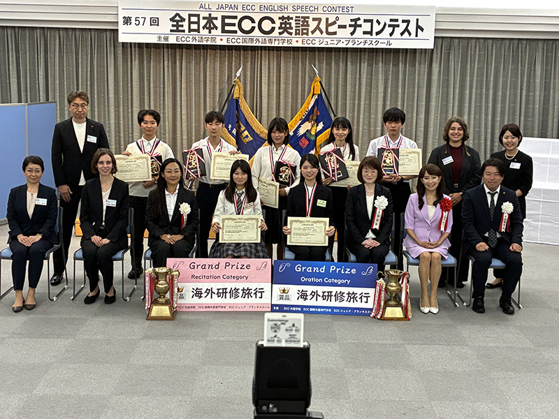 第57回全日本ECC英語スピーチコンテストが開催されました。 本学からは学内予選を勝ち抜いた6名が、暗唱の部、弁論の部に出場しました。 受賞者は以下の2名です。おめでとうございます! 弁論の部 グランドプライズ Mih