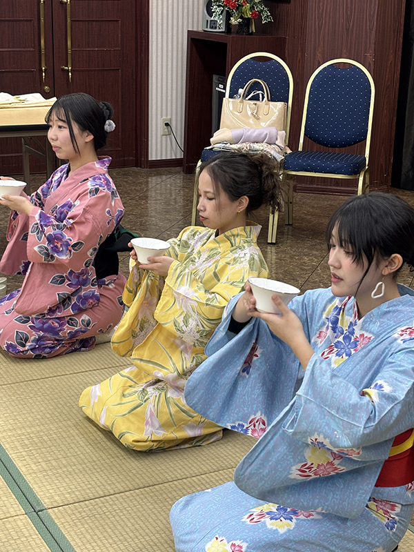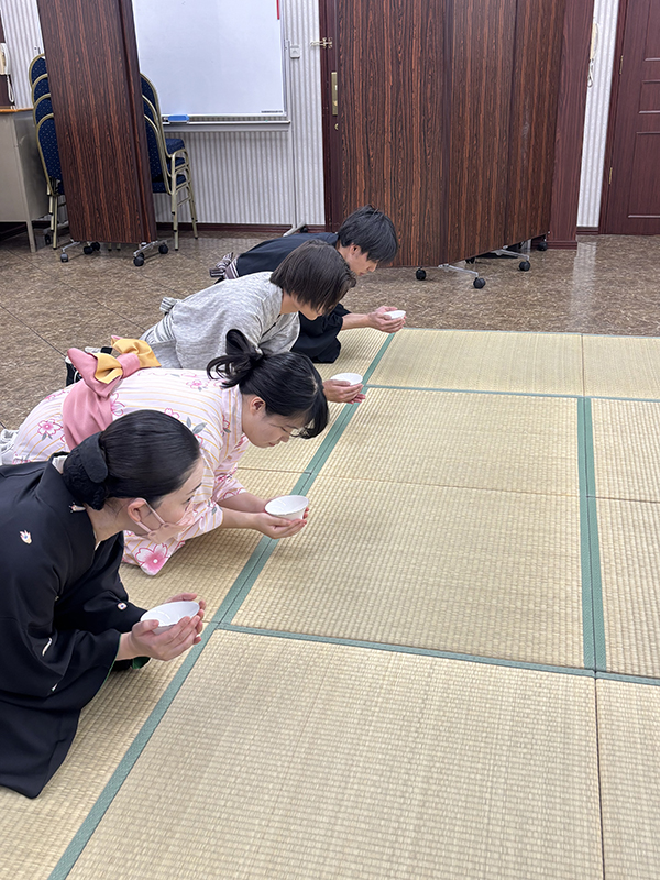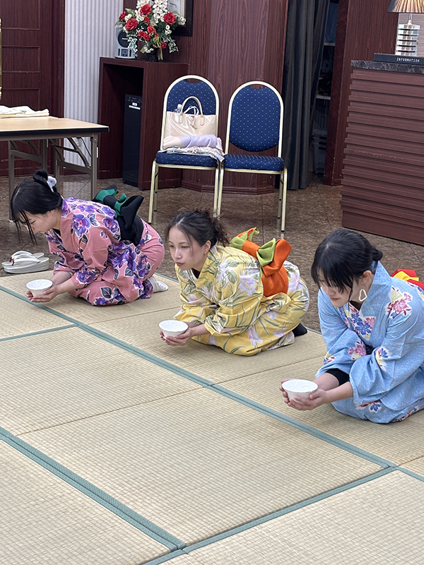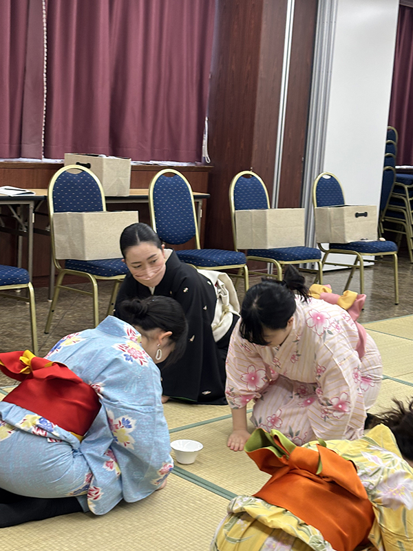 浴衣の着付け後、畳の上での立ち居振る舞いを学びました‼️