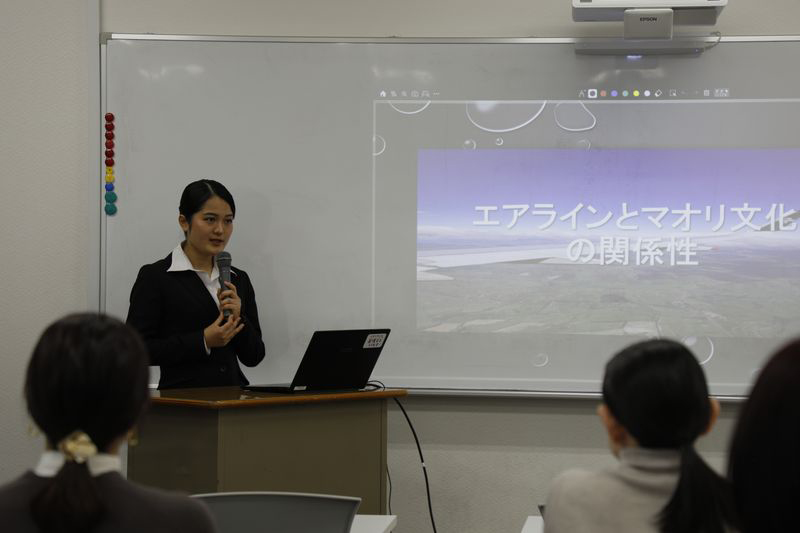 ニュージーランドインターンシッププログラムの文化研究発表会にて(国際エアラインの学生)