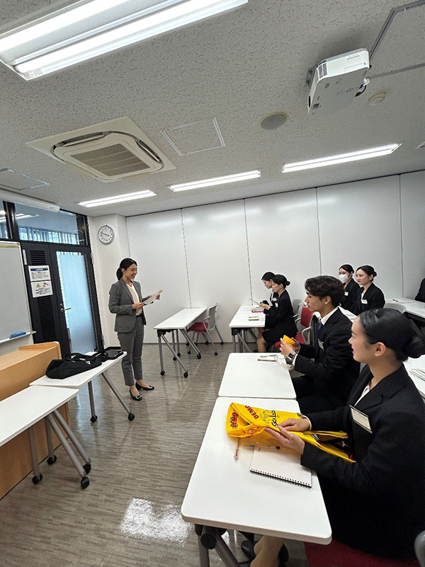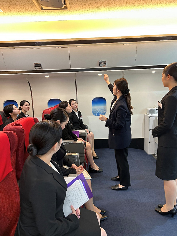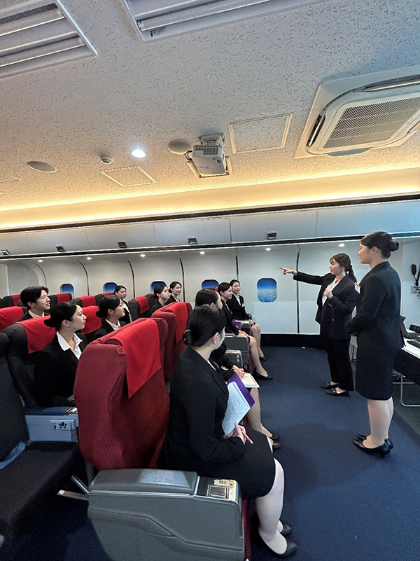 客室乗務員の最重要任務「保安業務」についての授業が行われました。
