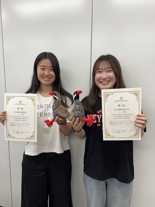 さらに、インターンシップ修了証と記念品として「ヤンバルクイナ」のぬいぐるみを