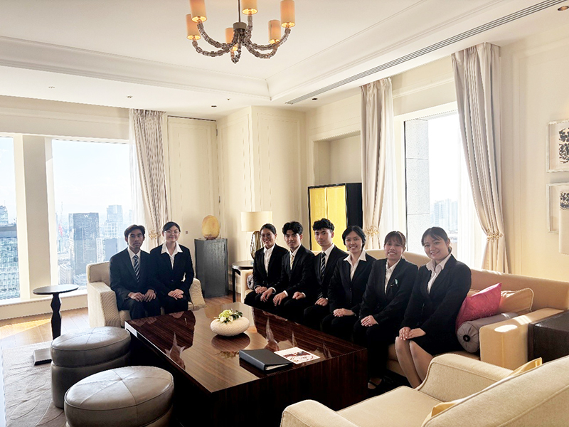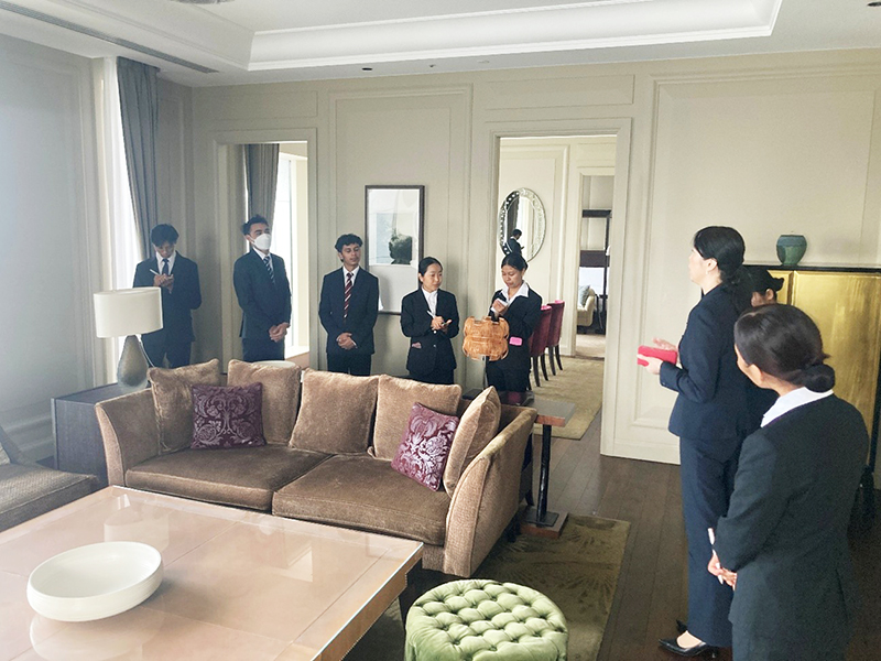 また、見学を案内してくださった本校の卒業生の先輩は、セントレジスの魅力を熱心に伝えてくださり、その立ち居振る舞いからもプロとしての誇りが感じられました。生徒たちにとっても、将来の働き方や姿勢を考える貴重な学びとなったことと思います。