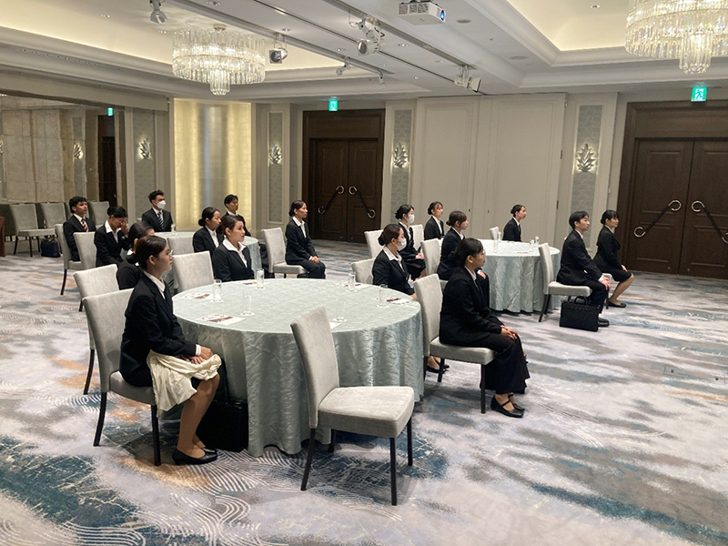 はじめに、ホテルの歴史や大切にされているモチーフ、そしてどのようなコンセプトで運営されているのかについてご説明をいただきました。世界的に名高いホテルとしての哲学やこだわりに触れる中で、「ホスピタリティとは何か」を改めて考えさせられる時間となりました。