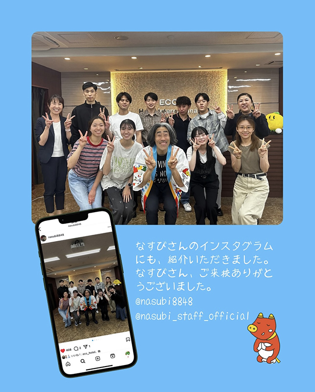 福島県出身でタレントの「なすび」さんが来校されました。